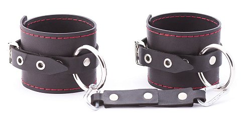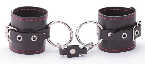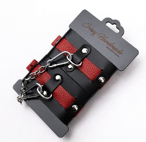 [NAME] => Черно-красные кожаные наручники на металлической сцепке