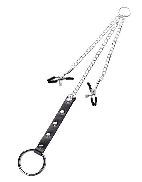 [NAME] => Серебристо-чёрные зажимы для сосков с кольцом для пениса TOYFA Metal