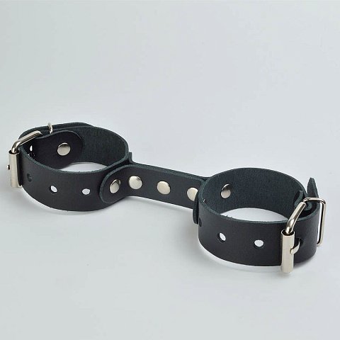 Оковы регулируются с помощью прочного ремешка из натуральной кожи , что позволяет настроить размер под любой обхват (от 24 до 33 см). В комплект входит прочная соединительная цепочка с двумя карабинами , обеспечивающая надежность и контроль.