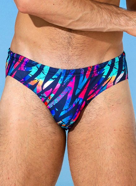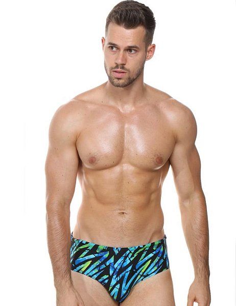 Зеленые мужские плавки-хипсы с белым поясом. Быстросохнущая ткань.