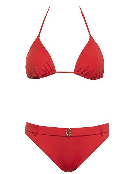 Раздельный купальник: бюстье с мягкой чашкой со съемными вкладышами и трусики-слип с высокой линией талии. Несъемные широкие бретели. Застежка на поворотный замок. В комплекте: бюстье, плавки.