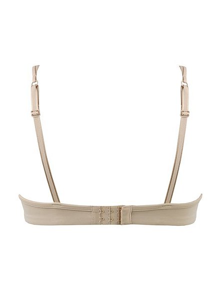 Бюстгальтер-триангул с уплотненными формованными чашками без пуш-ап, без косточек. Глубокая линия декольте. Спинка двуслойная. Бретели несъемные, регулируемые. Застежка в два ряда на три позиции. Выполнен из эластичной, мягкой микрофибры.