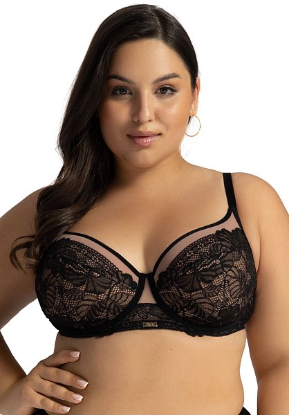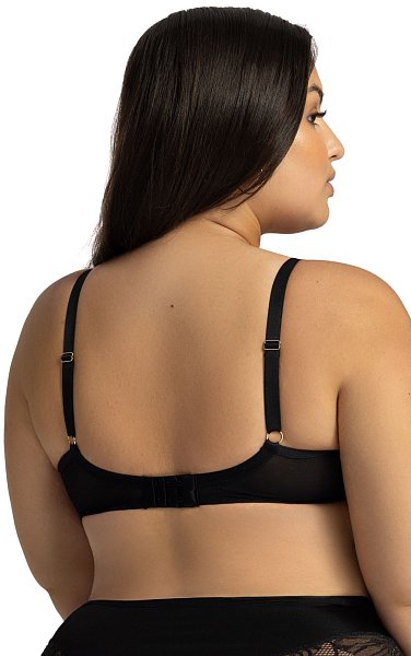 Бюстгальтер Boudoir P-UP выполнен на косточках, с дополнительными боковыми поддержками, чашки на тонком поролоне телесного цвета, со съёмными пуш-ап вкладышами, внешняя сторона из кружева. Спинка кружевная продублирована телесной сеткой. Бретельки отстёгиваются на спинке, регулируются по длине, фурнитура металлическая цвета розового золота. На спине застёжка на удлинитель, количество крючков в ряду застёжки, увеличивается пропорционально размеру бюстгальтера.