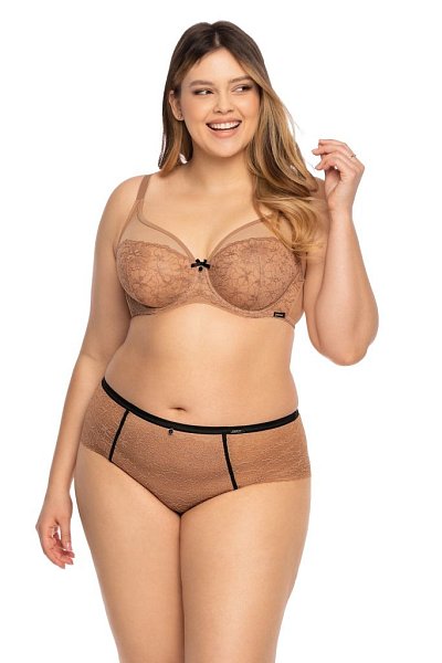 Бюстгальтер Elisabeth M выполнен на косточках, чашки мягкие, шитые из сетки телесного цвета, нижняя часть покрыта сеткой с вышивкой нитью в тон. Бретельки пришиты, регулируются по длине. На спине застёжка на удлинитель, фурнитура цвета золота.