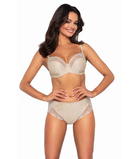 Бюстгальтер с мягкими чашечками на косточках, с боковым подкроем. Чашки шитые из эластичной ткани с цветочным принтом и сетки с вышивкой. Пояс из эластичного сетчатого полотна. Бретельки регулируются по длине, не отстёгиваются. На спине застёжка на удлинитель, количество крючков в ряду застёжки увеличивается пропорционально размеру бюстгальтера, фурнитура металлическая цвета меди. Проверенная конструкция, классический дизайн и нежные цвета — идеальное трио, на которое можно положиться в любой ситуации. Мягкие чашечки бюстгальтера с плотным принтом в виде девичьих цветочков выполнены из эластичной ткани, дополненной в верхней части ажурной вышивкой, которая красиво подчеркивает женственные формы и кокетливо обнажает соблазнительный овал бюста. У бюстгальтеров/купальных лифов AVA довольно тугой пояс, который адаптируется под тело после нескольких дней носки или одной-двух стирок. Рекомендуем использовать удлинитель пояса бюстгальтера на первое время либо выбирать следующий за «своим» размер, с поясом длиннее.