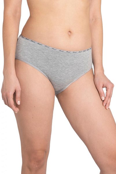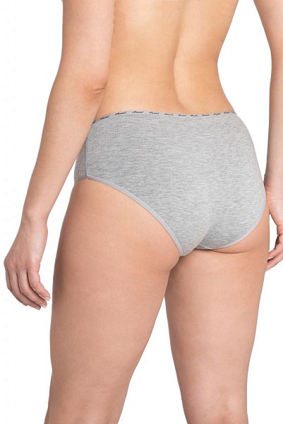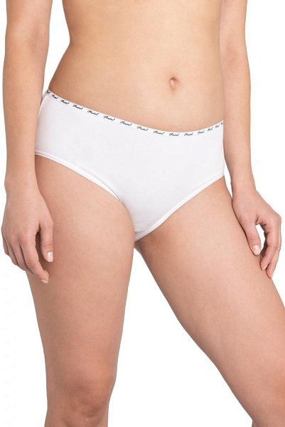 Трусы-слипы со средней линией талии, с широким бочком, выполнены из однотонного хлопкового плотна. Для обработки талии использована узкая декоративная резинка с контрастным логотипом. Хлопковая ластовица.