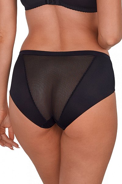 Трусики-слипы Sonia выполнены из эластичной полосатого трикотажа и сетки, на спинке вставки из сетки, сложенной вдвое. Ластовица проложена 100% хлопком.