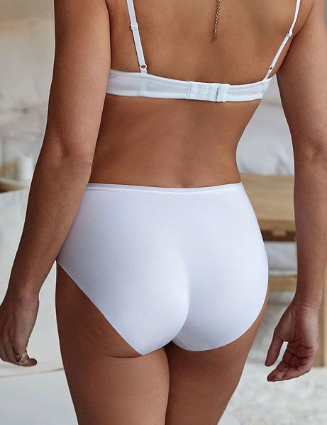Трусики-слип с высокой талией из мягкой микрофибры и вставок из объемного кружева. Линия открытия ножки выполнена по бесшовной технологии.