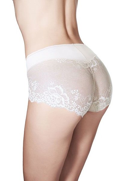 Трусы-слип с высокой линией талии из эластичной микрофибры в сочетании с плоским цветочным кружевом с бесшовным краем сзади. Высота бочка 14 см. Передняя кружевная часть дублирована микрофиброй, что обеспечивает легкую поддержку зоны живота. Пояс обработан плоской резинкой 0,5 см. Ластовица выполнена из уникального хлопкового материала.