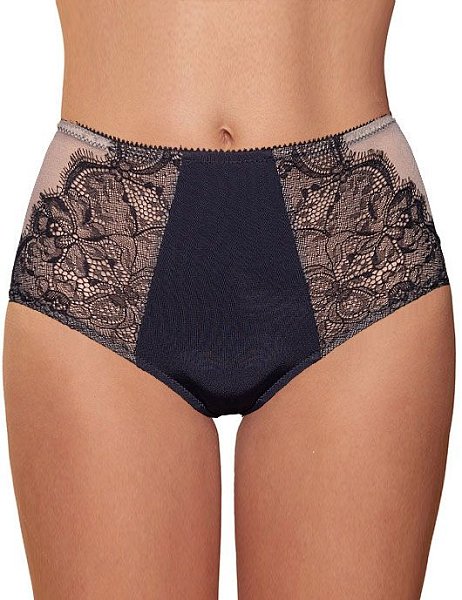 Трусы с высокой линией талии. Выполнены из деликатного эластичного полотна. Вырез ножки декорирован плоским кружевом с цветочным рисунком. По талии пришита эластичная тесьма. Хлопковая ластовица. Благодаря особенностям кроя изделие абсолютно незаметно под одеждой, при этом трусы обладают легким корректирующим эффектом.